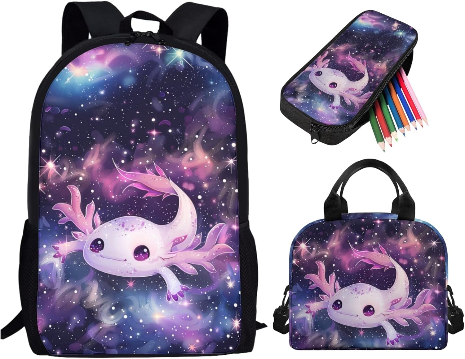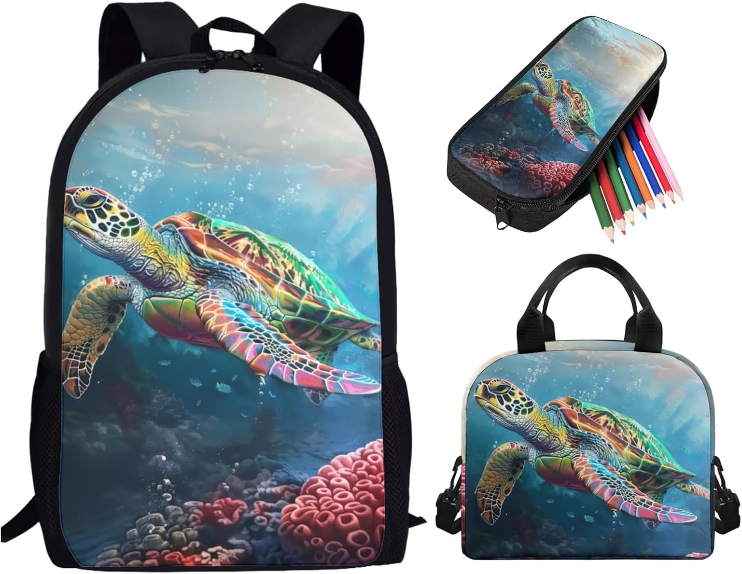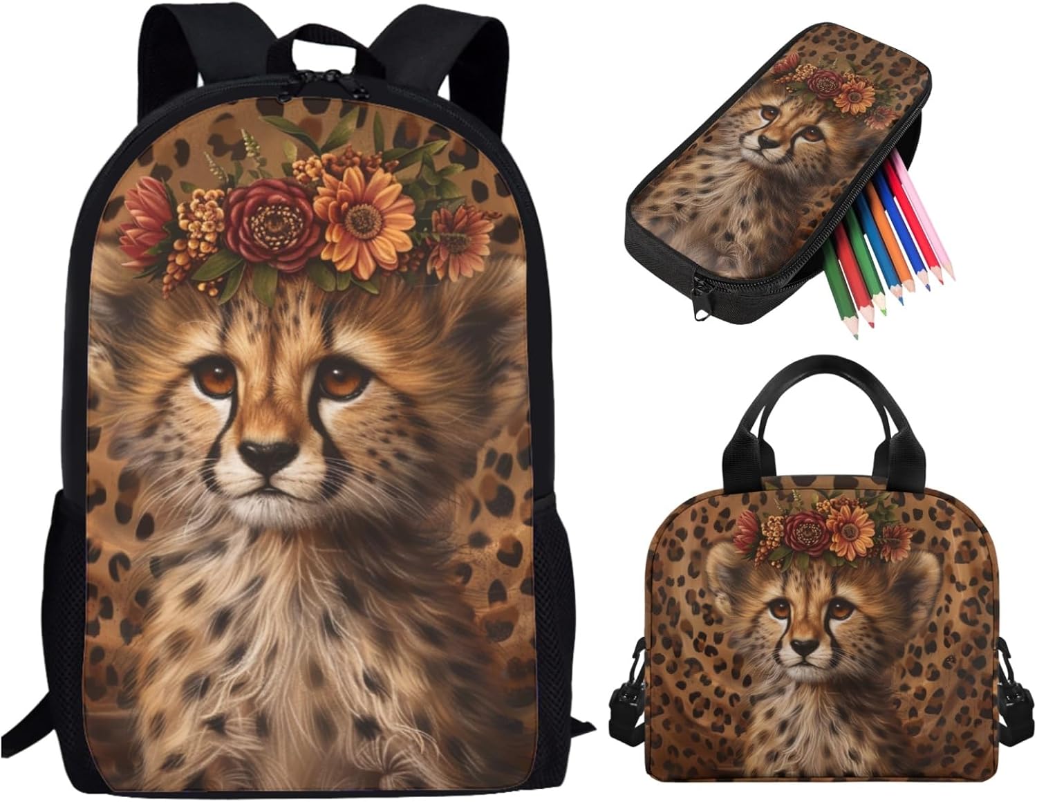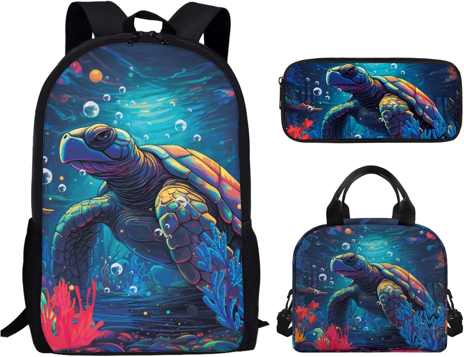 1.Backpack Dimension:17.3*11*5.1 inches 2.Lunch Bag Dimension:9.1*8.2*5.1 inches 3.Pencil Case Dimension: 8.2*3.9*1.2 inches Note: 1.This kids backpack set is hand washable, but please pay attention that school backpack set can neither be bleached nor be immersed for a long time. Besides, the temperature of the detergent should be lower than 45℃ 2.Please allow a little error (usually 1 to 2 cm) on the size due to different measure methods. 3.Please allow a little color different due to different display or light environment. Our Kids School Backpack Set is suitable for children over 3 years old.