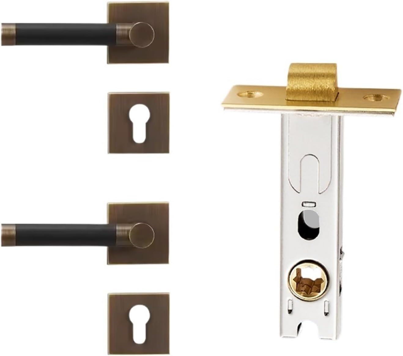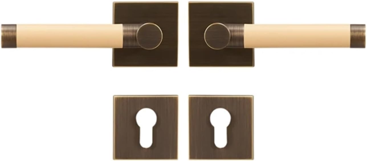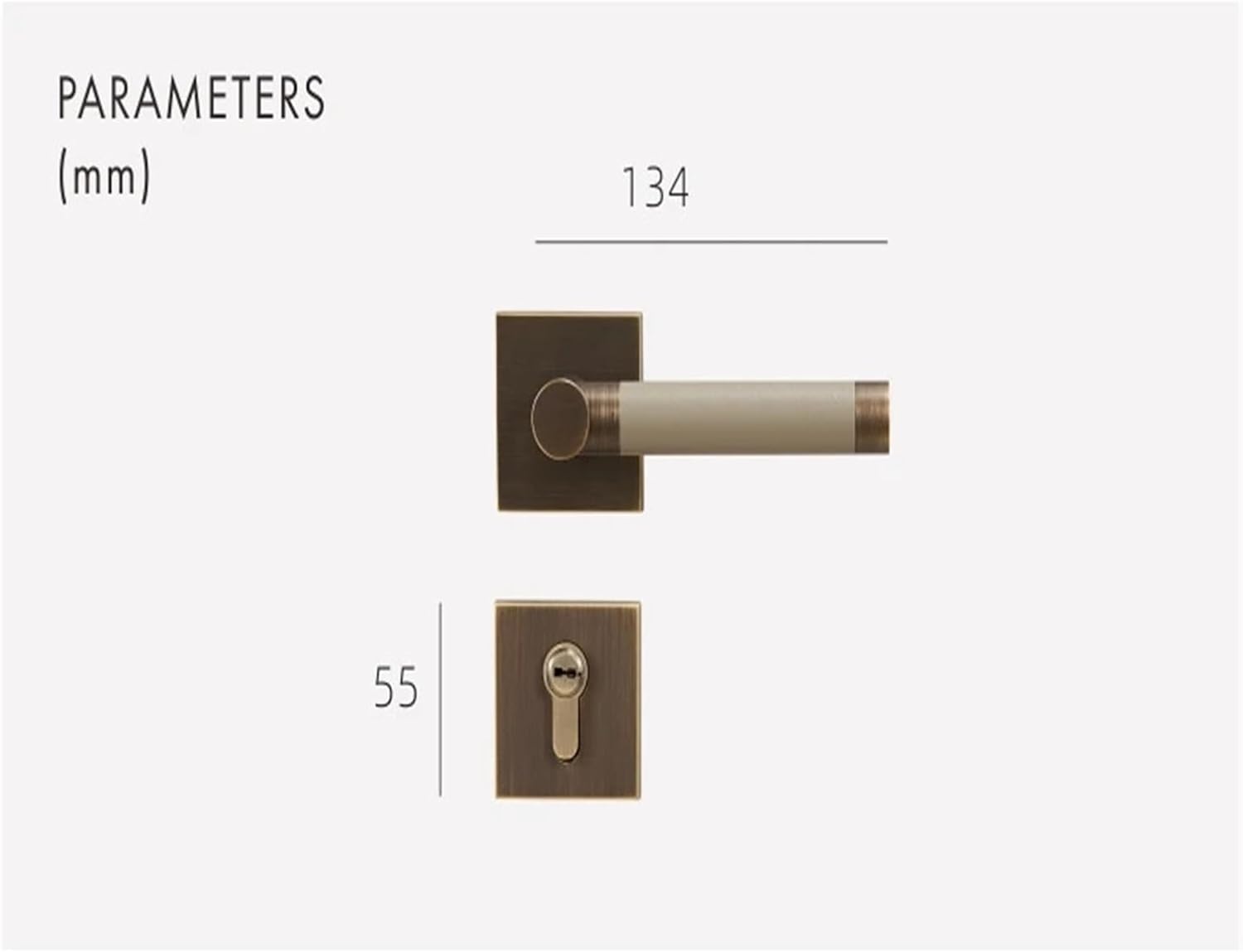 • Modern brass door lock set with replaceable leather panels, ideal for interior bedroom and bathroom double wooden doors.