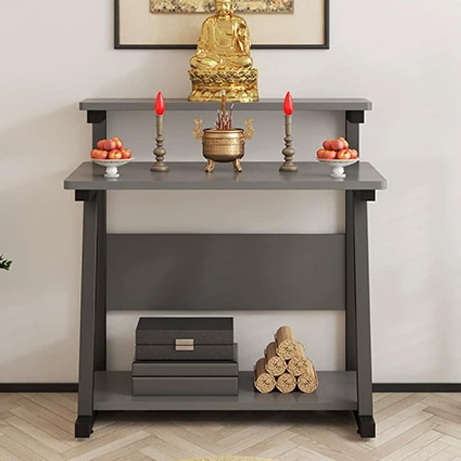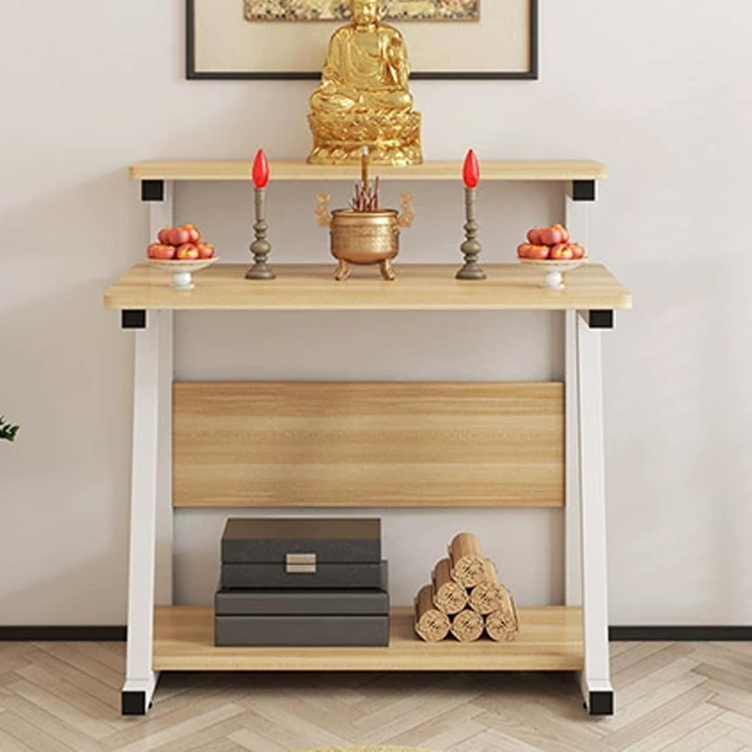 YUGXTH double-tier sacrificial altar design for organized meditation space create a peaceful sanctuary in your home with our elegantly designed altar table, crafted for daily meditation, prayer, and spiritual rituals. The small design saves your space and allows you to easily build a personal corner.Product Specifications:Name: Personal Shrine Altar Table, Day of the Dead Altar Stand, Altar Cabinet, Meditation Prayer Table, Buddhist Altar, Chinese Buddha Niche Cabinet, Offering and Incense TableMaterial: Metal, WoodColors: White, Brown, Gray+white, Gray+black, NaturalDimensions: 60*50*90 cm / 23.6*19.7*35.4 in, 80*50*90 cm / 31.5*19.7*35.4 inInstallation Type: Disassembled (Assembly Required)Use: Suitable for ancestral halls, temples, worship, sacrifice, incense burning, divination, various rituals, suitable for formal and casual occasionsPackaging Contents:Altar Cabinet * 1Other Installation Accessories (Assembly Required)Notes:Please confirm dimensions prior to purchase, as there may be a slight error of 0-3 cm due to manual measurement.Images are for illustrative purposes only; additional items shown are not included.Colors may vary slightly due to monitor differences.