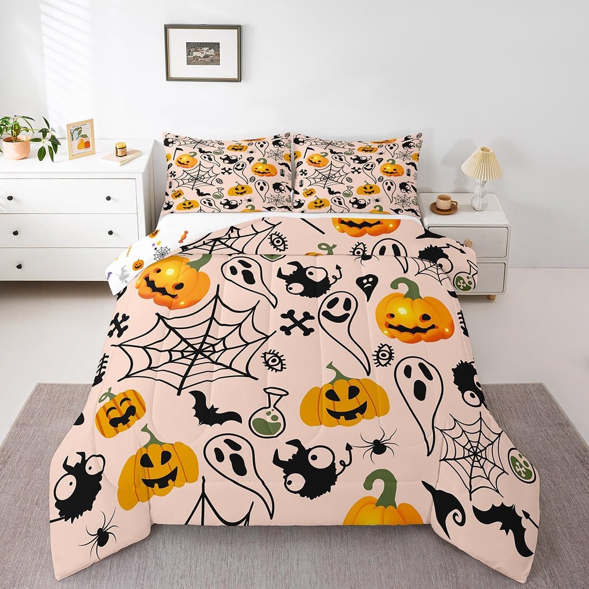 Size Information Twin size: 1 Down Comforter 68"W x 90"L, 1 Quilted Pillowcase 30"W x 20"L. Full size: 1 Down Comforter 79"W x 90"L, 2 Quilted Pillowcases 30"W x 20"L. Queen size: 1 Down Comforter 90"W x 90"L, 2 Quilted Pillowcases 30"W x 20"L. King size: 1 Down Comforter 104"W x 90"L, 2 Quilted Pillowcases 36"W x 20"L. Versatility We have many kinds of styles for you to choose. You can easily find a product that suits the style of your room. The item is not only Suitable for your home, bedroom, guest room, living room, or rv, your families, friends, relatives, boyfriend,girlfriend. Modern Design The luxury aesthetic comforter set is made reactive printing and dyeing process. The pattern is clear, the color is bright, which will not fade after repeated washing. Personalized As a manufacturer of digital printed home textiles, we follow current trends and bring you the latest and stylish home textile products. The item will make the room decorated in exquisite taste