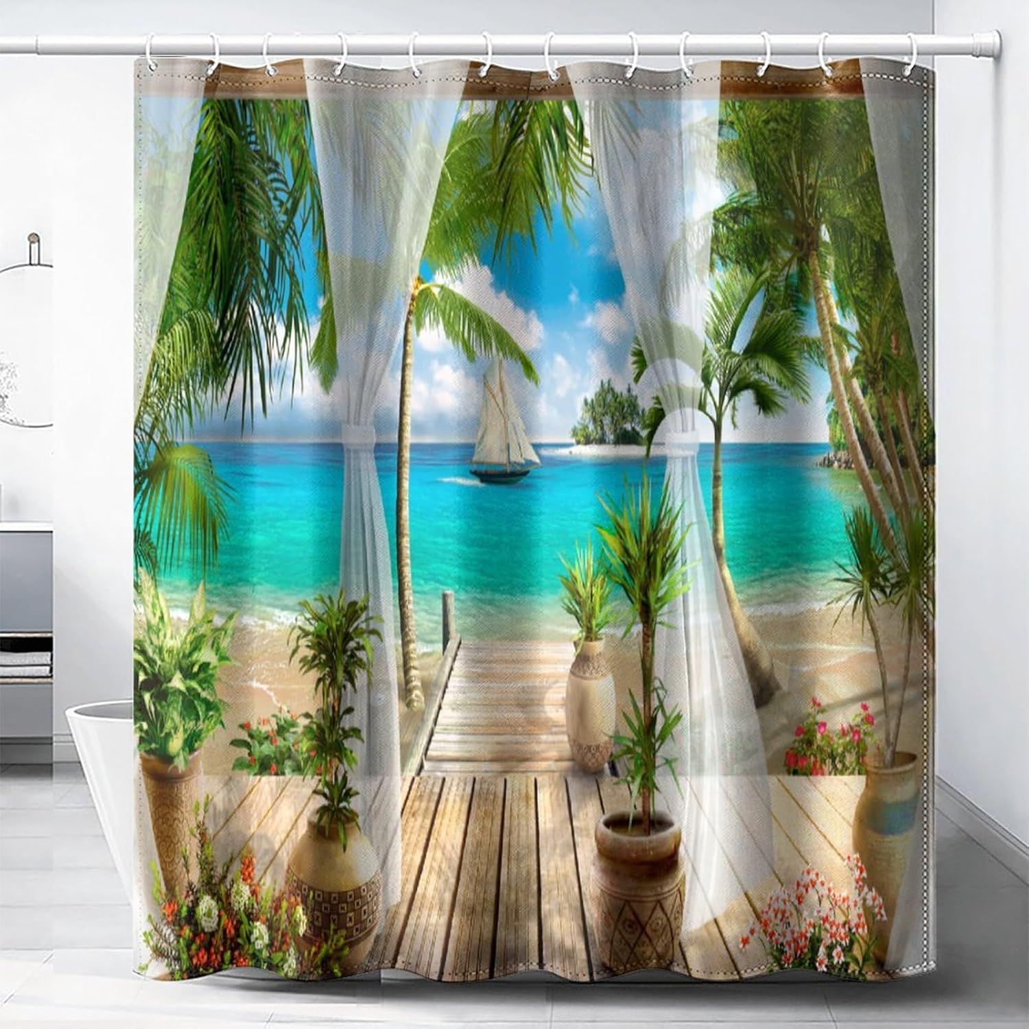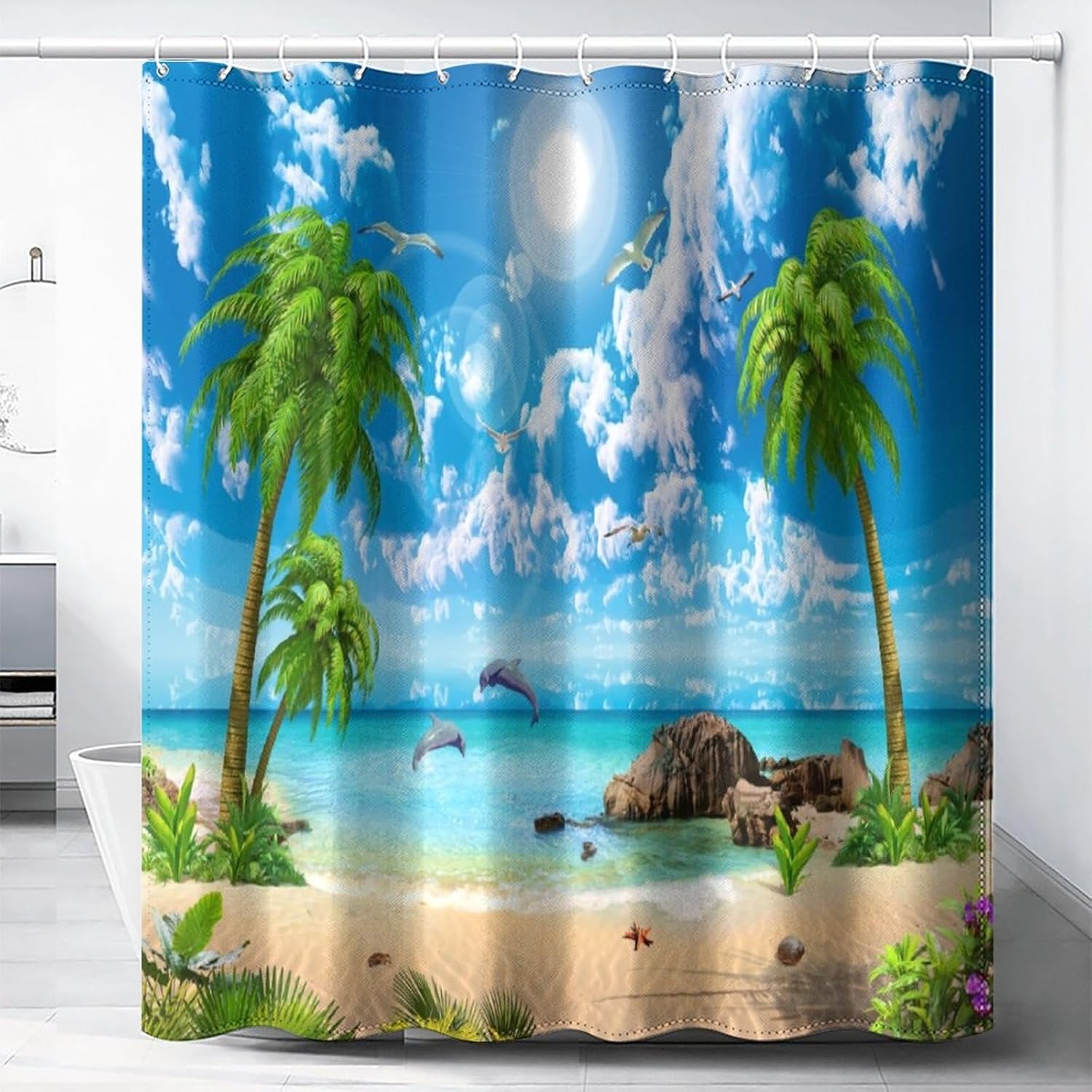 Make your bathroom better and fresher with this high quality shower curtain, which is an excellent choice. It is a high quality, waterproof and easy to clean bathroom decor made of polyester material that is waterproof and durable. This allows it to protect your bathroom for a long time, while being soft and easy to fold and store for a better experience.Our shower curtain is available in three sizes, 66x72 inches, 72x72 inches and 72x82 inches, to fit a variety of standard bathrooms. What makes it especially eye-catching is that it has a variety of design styles for you to choose from, which is both practical and meets your fashion taste, allowing you to show off your individual aesthetic and adding a warm and romantic atmosphere to your bathroom. Perfectly matched with your bathroom decor, in addition, the shower curtain is green and does not cause any damage to human body and the environment. If you are looking for a practical and beautiful shower curtain for your bathroom décor, then this product will definitely be the right choice for you.The shower curtain is also prepared with 12 strong hooks that can be easily installed. These hooks are strong and durable, not easy to fall off, providing you with a better experience. You can install this shower curtain in minutes and bring a stunning effect to your bathroom.Best of all, this shower curtain is easy to clean. If the shower curtain gets dirty from prolonged use, you can simply wash and dry it in the washing machine. This easy-to-clean design allows you to save time and effort.All in all, this shower curtain is ideal for your beautiful bathroom, quality assured, beautifully designed, and easy to install and clean. Why not put it in your shopping cart and enjoy an even better bathroom experience!