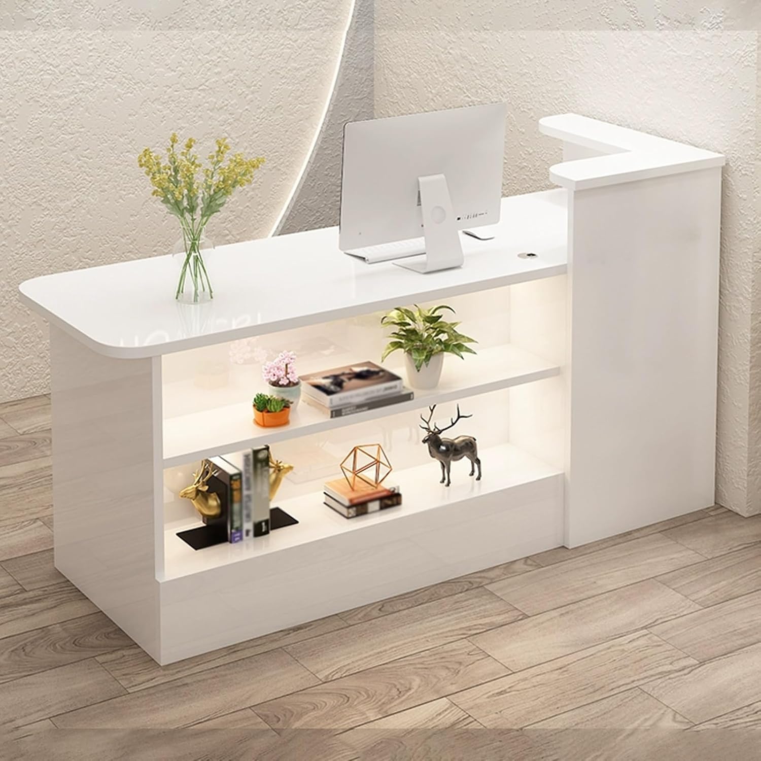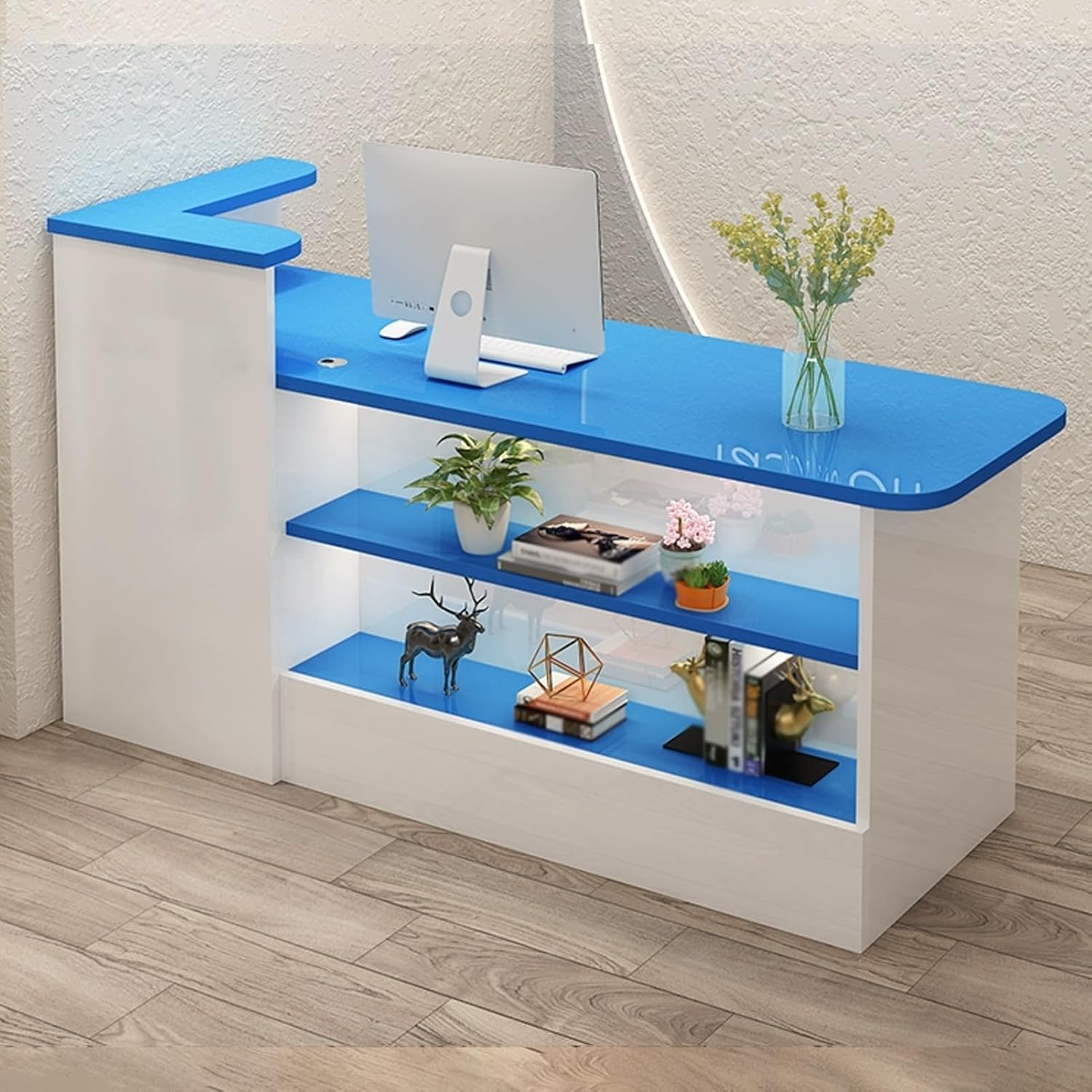 This YUGXTH front counter brings joy to your office. Used for conducting business or receiving visitors or customers. The trading surface provides guests with spacious writing space.Specifications:Product name: Reception deskMaterial: WoodColor: Beige , White+Natural , White+Beige , White , White+Gray , White+Black , White+Brown , Gray+White , White+Orange , White+Blue Style: Left, RightStyle: Modern and simpleLength: 100cm/39.3in, 120cm/47.2inWidth: 55cm/21.6inHeight: 100cm/39.3inApplicable scenarios: clothing stores, beauty salons, etc.Package Includes:1 x reception desk (excluding other items)Attention.1. Due to monitor differences, there may be slight color difference.2. Due to the measurement method, measurement method and other factors, there may be a slight error.