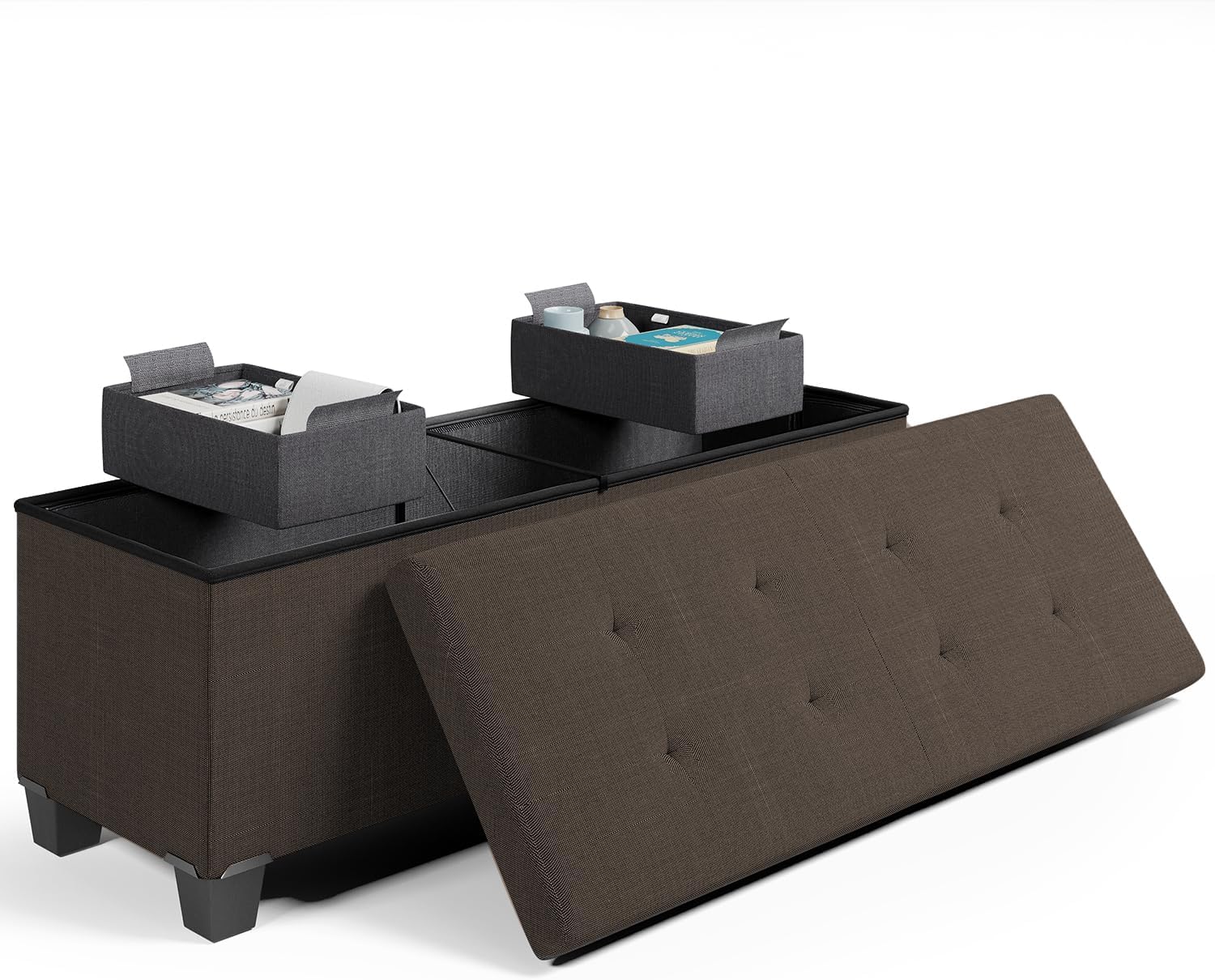 Storage Ottoman Cube with Storage Bin, 15-In Square Ottoman with Storage for Living Room and Bedroom, Small Ottoman Foot Rest, Foot Stools Ottoman, Storage Chest Max 660lbs, Linen Fabric Ottoman